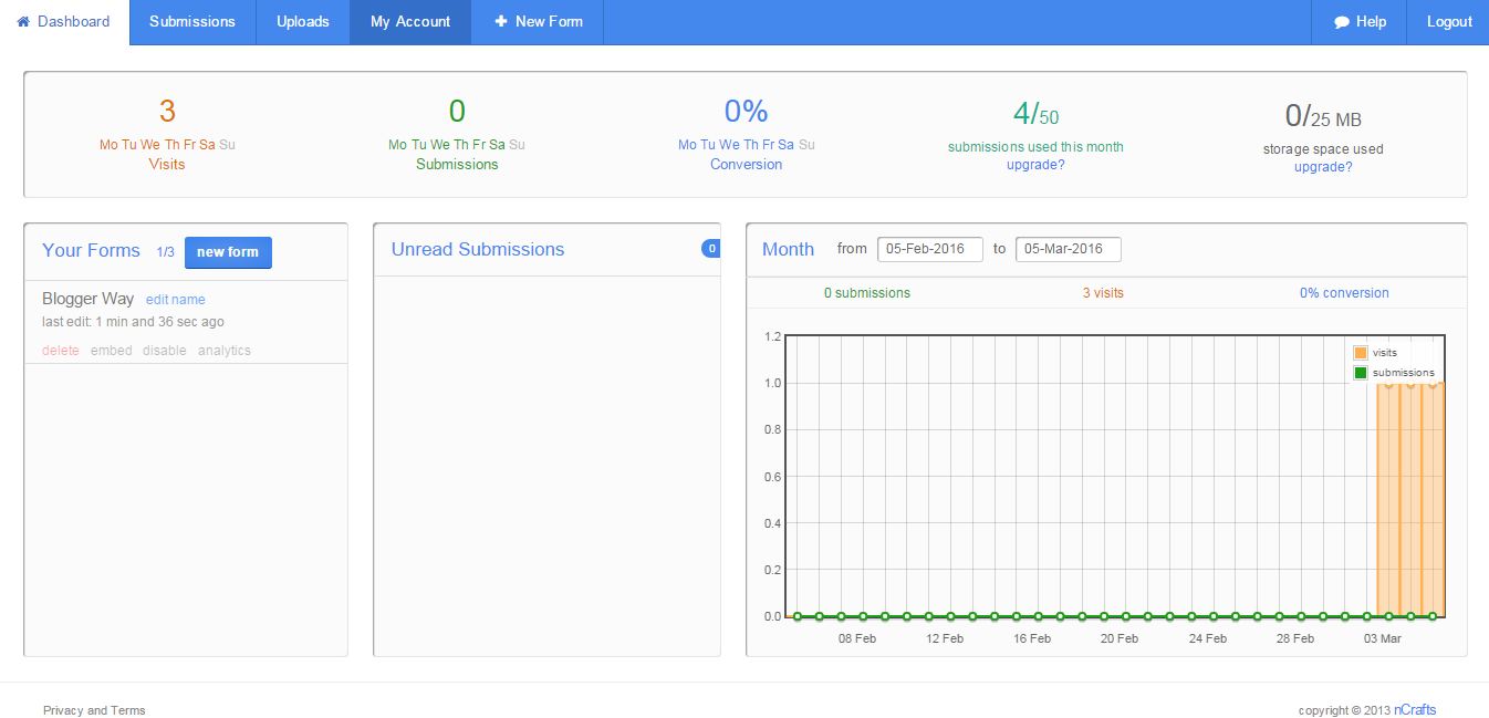 Pertama silahkan daftarkan diri anda disitus FormCrafts,Setelah itu silahkan login ke akun FormCrafts anda, buatlah Contact form semenarik dan secantik yang anda inginkan, FormCrafts telah menyediakan berbagai macam tool yang bisa anda gunakan,