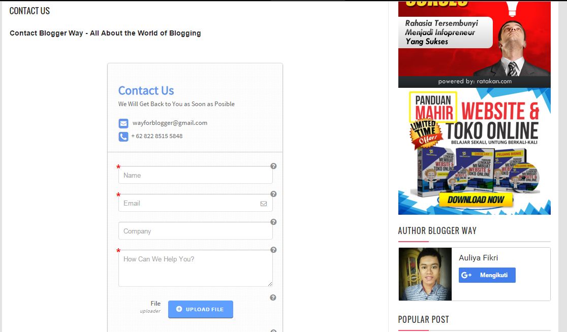 Tutorial Cara Membuat Contact Form Cantik untuk Blog