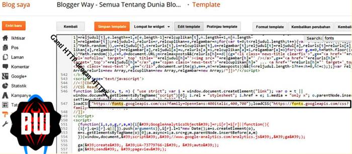 Langkah Selanjutnya yaitu memperbaiki URL font blog yang tidak Support HTTPS yang menyebabkan template blog anda rusak, caranya sangat mudah, buka Settingan Template pada blog anda, klik HTML edit dan tekan CTRL+F pada keyboard kemudian ketikan kata fonts, setelah itu tambahkan saja huruf S pada URL yang semula HTTP menjadi HTTPS, lakukan langkah ini sampai semua URL fonts blog anda telah anda tambahkan huruf S tersebut, kemudian Klik Simpan.