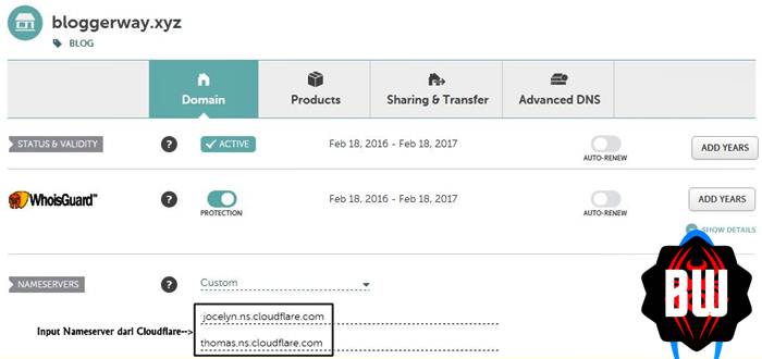 Bukalah akun Namecheap anda, setelah Log In, silahkan klik Account-Domain List dan buka domain yang akan akan pasangi SSL Cloudflare, setelah itu taruh Nameserver dari Cloudflare pada Kolom Nameservers, anda bisa melakukan Copy-Paste agar lebih cepat dan tidak terjadi kesalahan saat anda memasang Nameserver dari Cloudlare ke domain Namecheap anda,