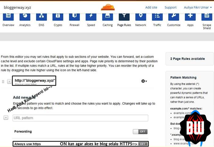 Seperti yang terlihat pada gambar diatas adalah settingan Standar dari SSL anda, apabila anda ingin blog anda selalu diakses dalam mode HTTPS silahkan tambahkan Rule seperti terlihat pada gambar dibawah ini,