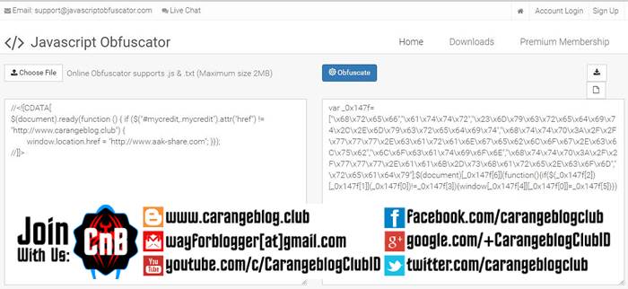 - Sekarang Encode-kan script di atas dengan pergi ke link berikut : [Javascript Obfuscator],